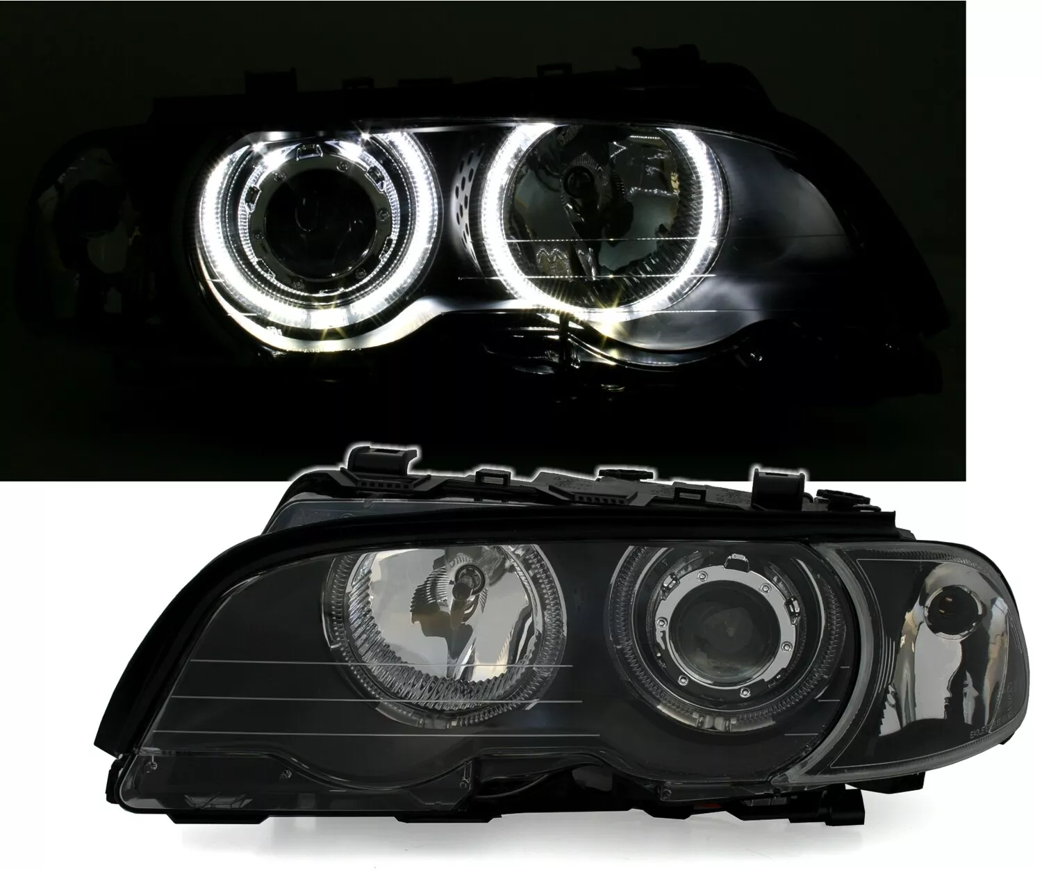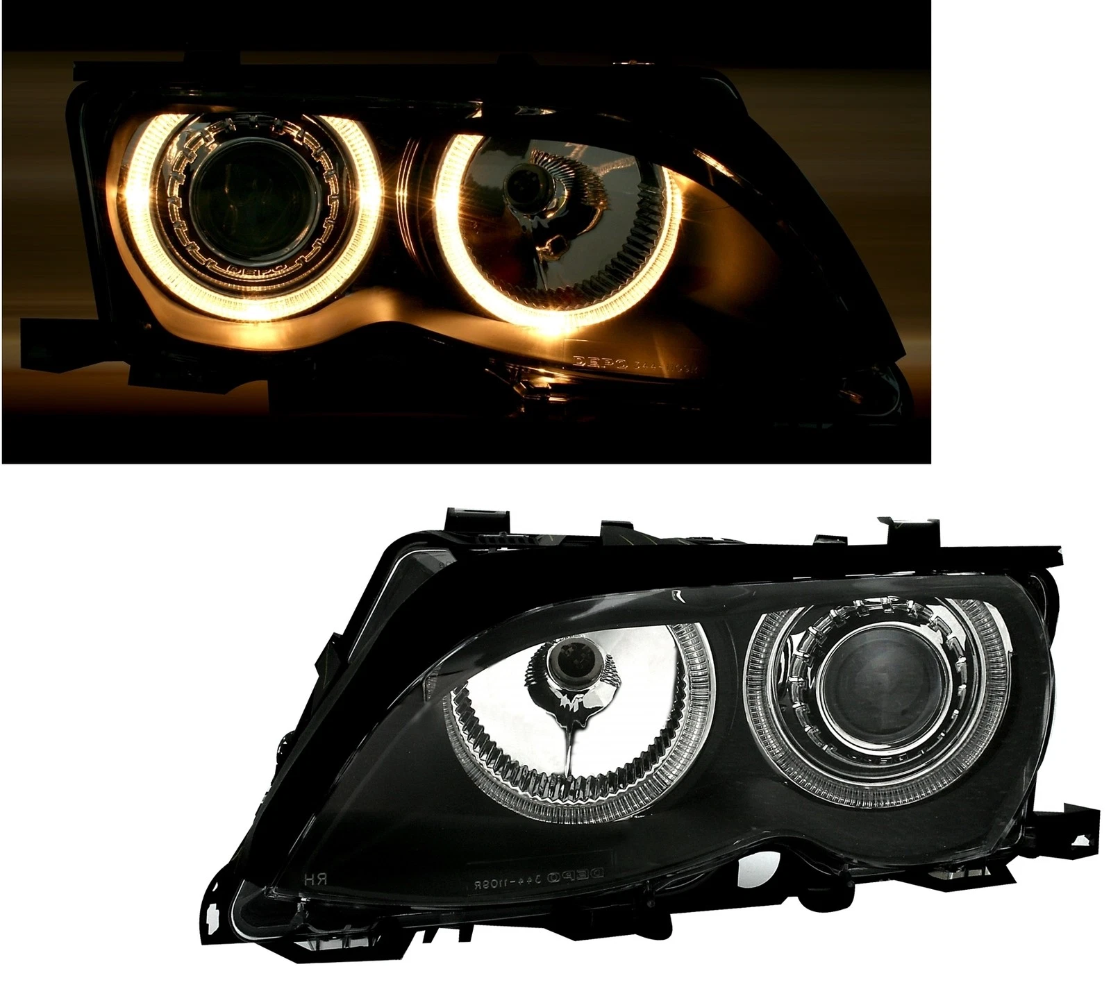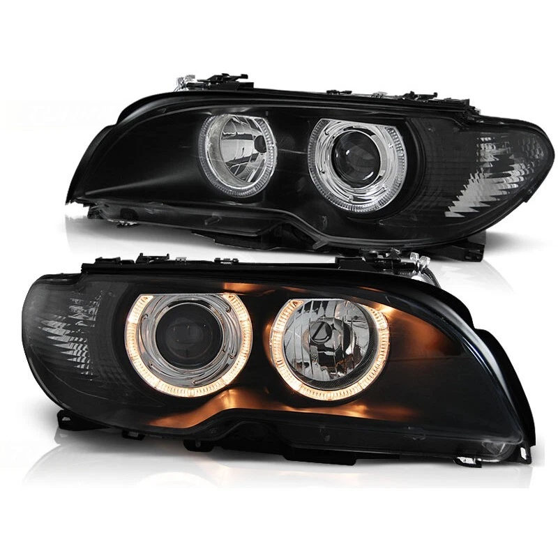Tuning priekiniai žibintai skirti BMW 3 serijos E46 modeliams nuo 99-03m. Cuope, Cabrio. Su Angel žiedais. Lemputės H7-H7. Taiwan. Depo. Premium kokybės detalės. €340.00