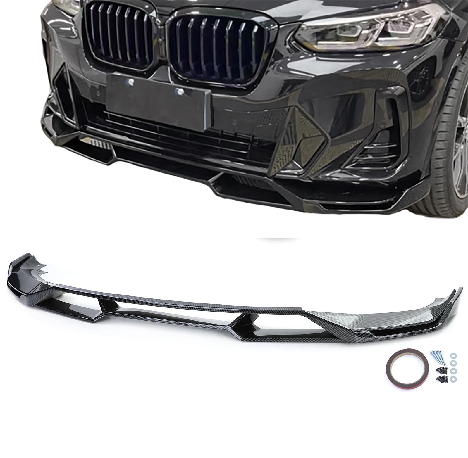 M performance priekinio bamperio spoileris skirtas BMW X3 G01 LCI modeliui nuo 22-25m. Tinka tik M Tech bamperiui. Carbon spalvos. €136.00