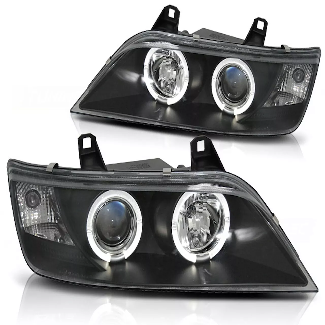 Tuning priekiniai žibintai skirti BMW Z3 modeliui nuo 95-02m. Tamsinti. CCFL Angel žiedai.