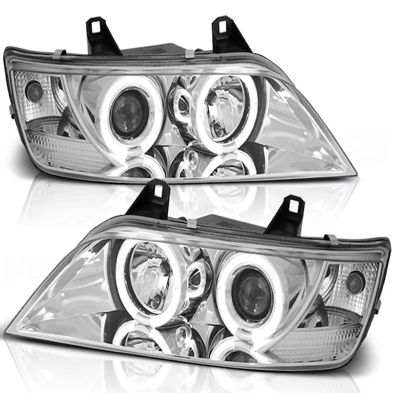 Tuning priekiniai žibintai skirti BMW Z3 modeliui nuo 95-02m. Chrom. Angel žiedai CFL.