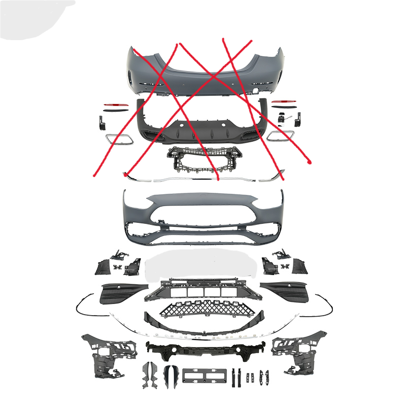 AMG C63 style priekinis bamperis ir galinio bamperio apdailų su antgaliais komplektas skirtas MB C Klasė W206, S206 modeliams nuo 21-23m. Difuzorius tinka AMG serijos bamperiui. €950.00