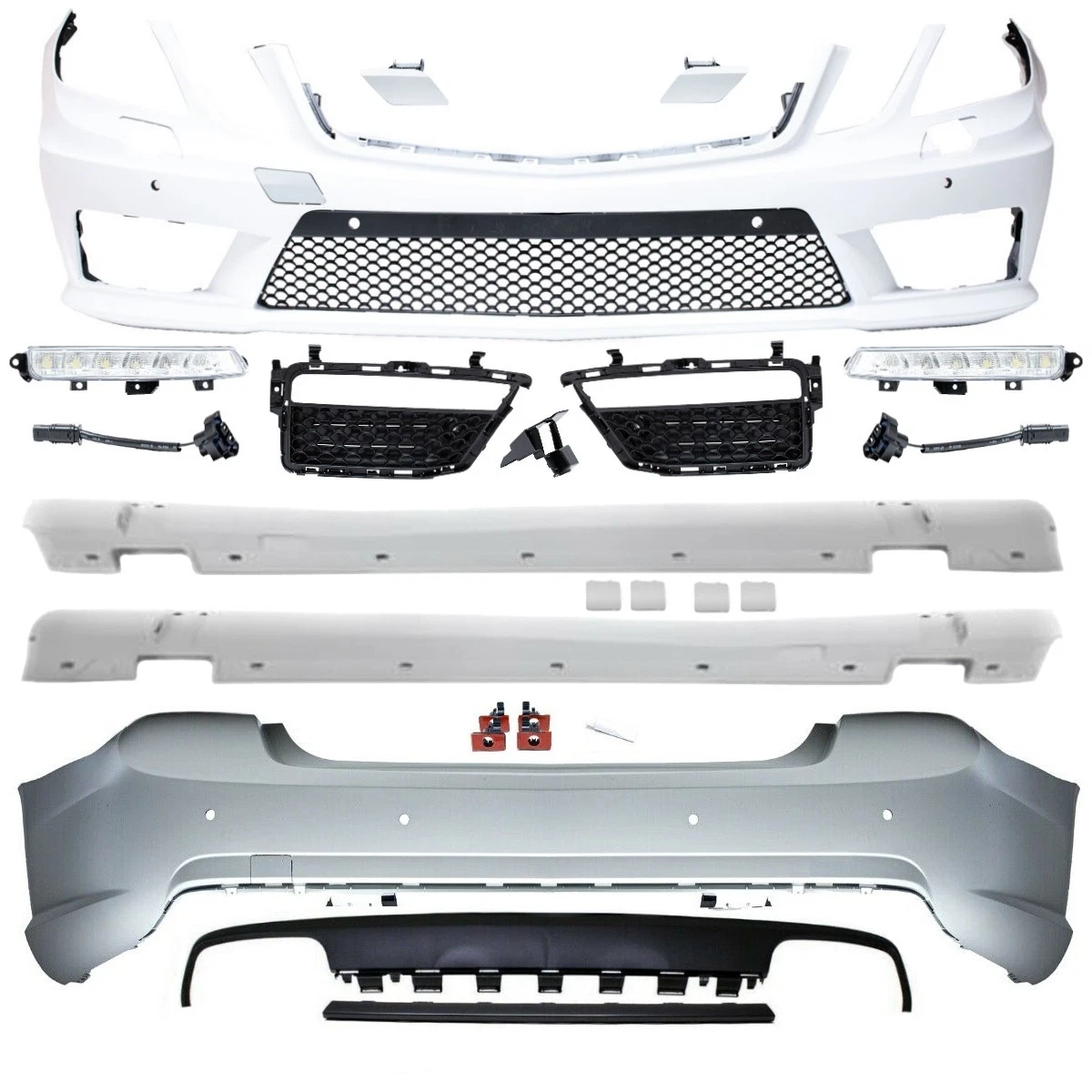 AMG style bamperių ir slenksčių komplektas sedanui MB E Klasė W212 nuo 09-13m. Made in Taiwan.su Apiplovimo ir PDC skylėmis. Led . €760.00