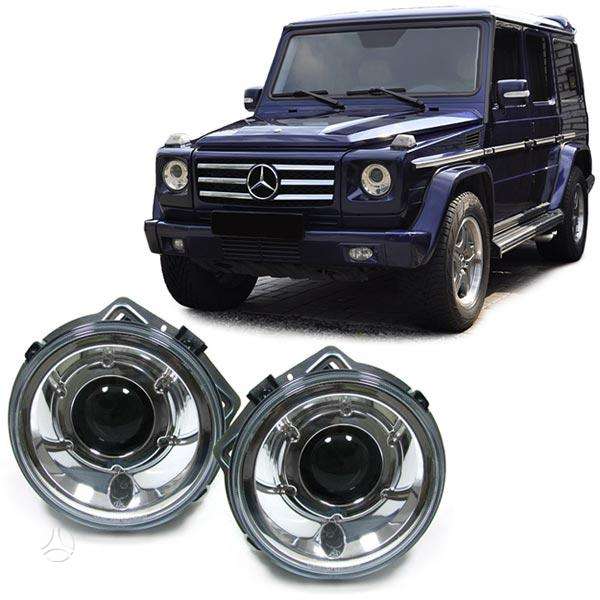 Tuning priekiniai žibintai skirti MB G Klasės W463 modeliams nuo 89-08m. Facelift xenon optik. Lemputė H7. Taiwan. Depo. Chrom. €365.00