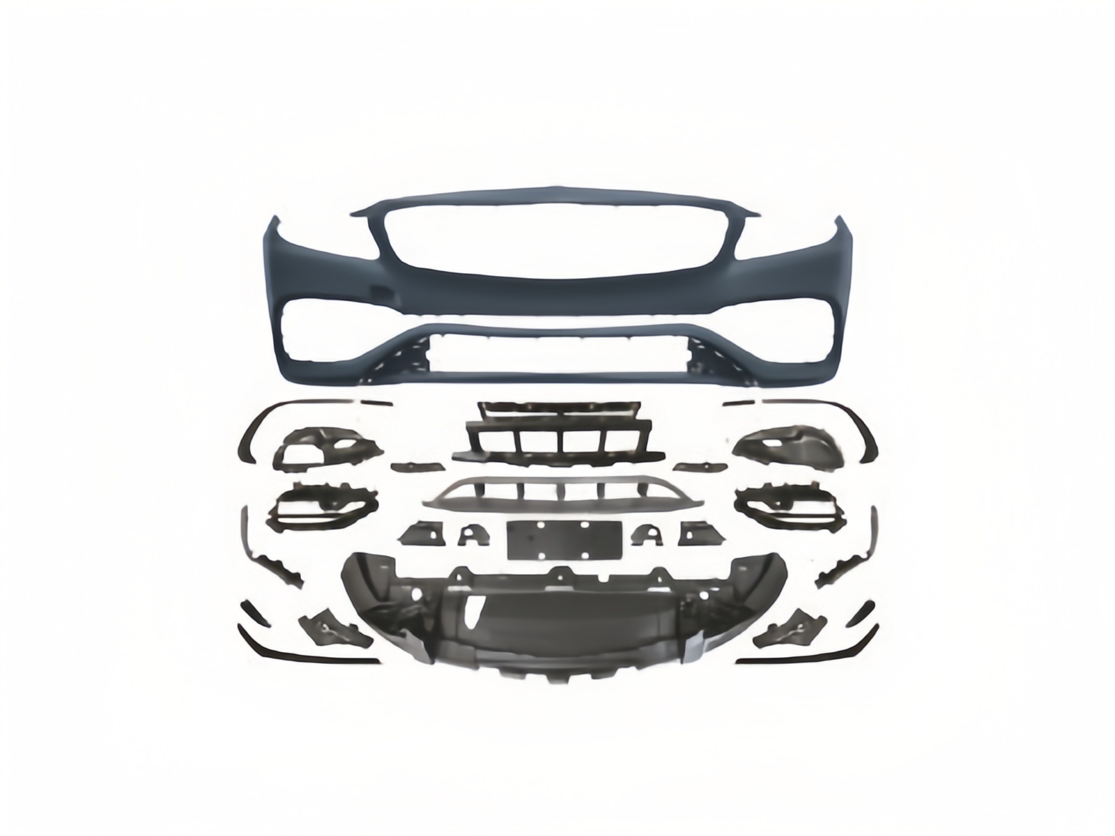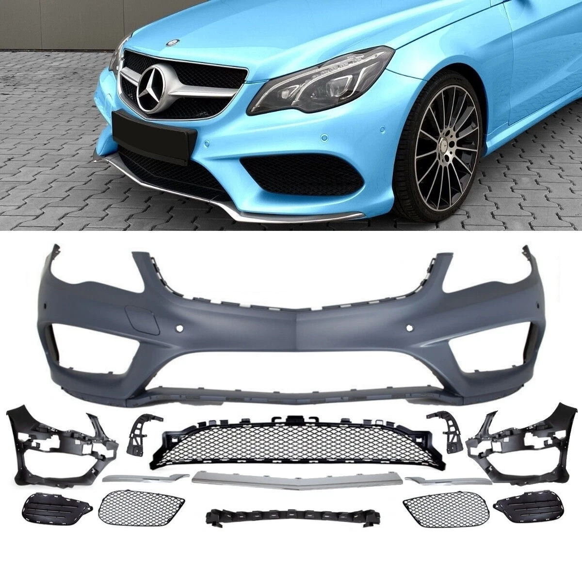 AMG optik priekinis bamperis skirtas Mercedes E klasės Cuope C207, Cabrio A207 modeliams nuo 13-16m. 6 PDC skylės. Sidababro spalvos apdailos juostos. €690.00