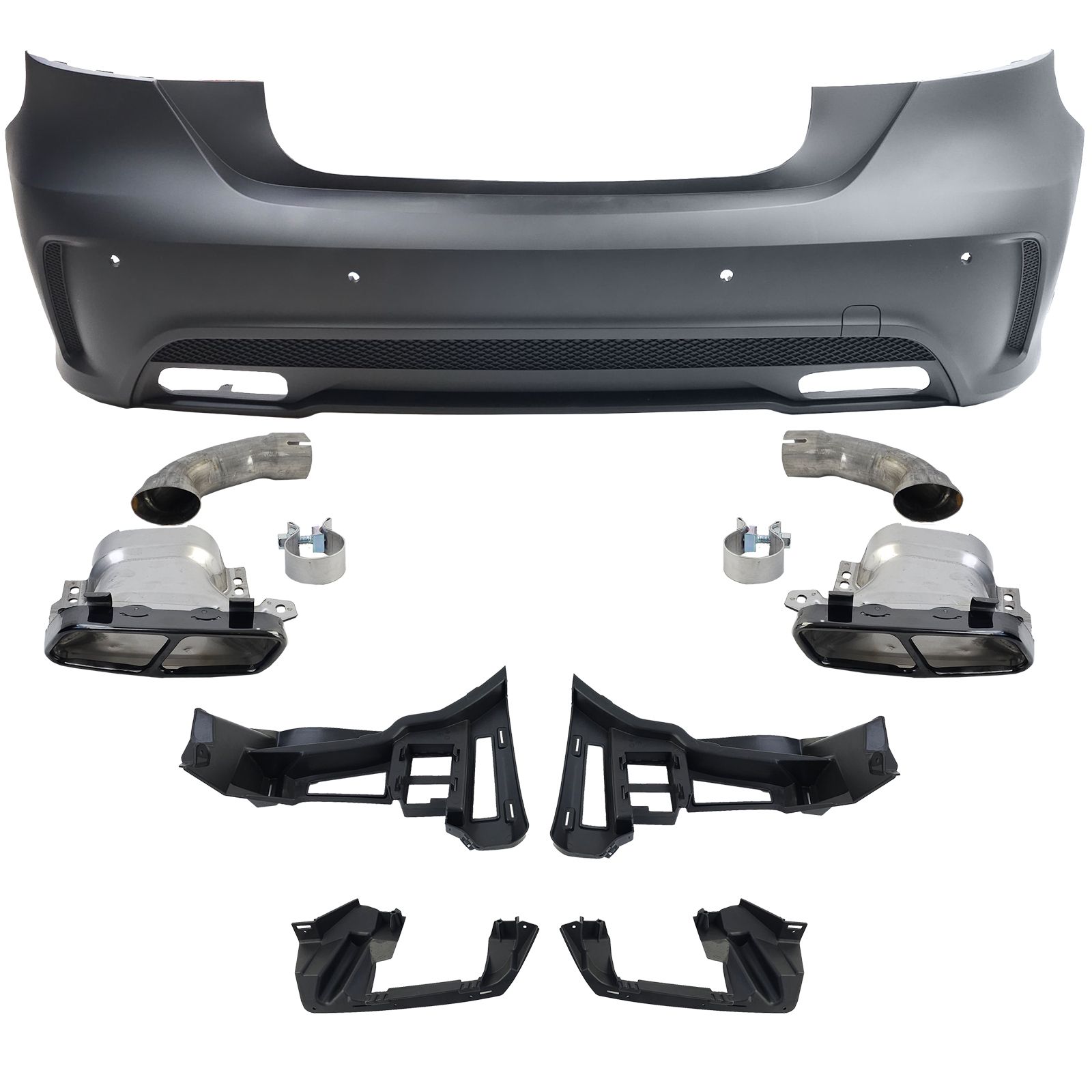 AMG optik galinis bamperis skirtas Mercedes A Klasės W176 modeliams nuo 12-18m. Su PDC skylėmis. Komplektas su Juodais blizgiais antgaliais. €350.00