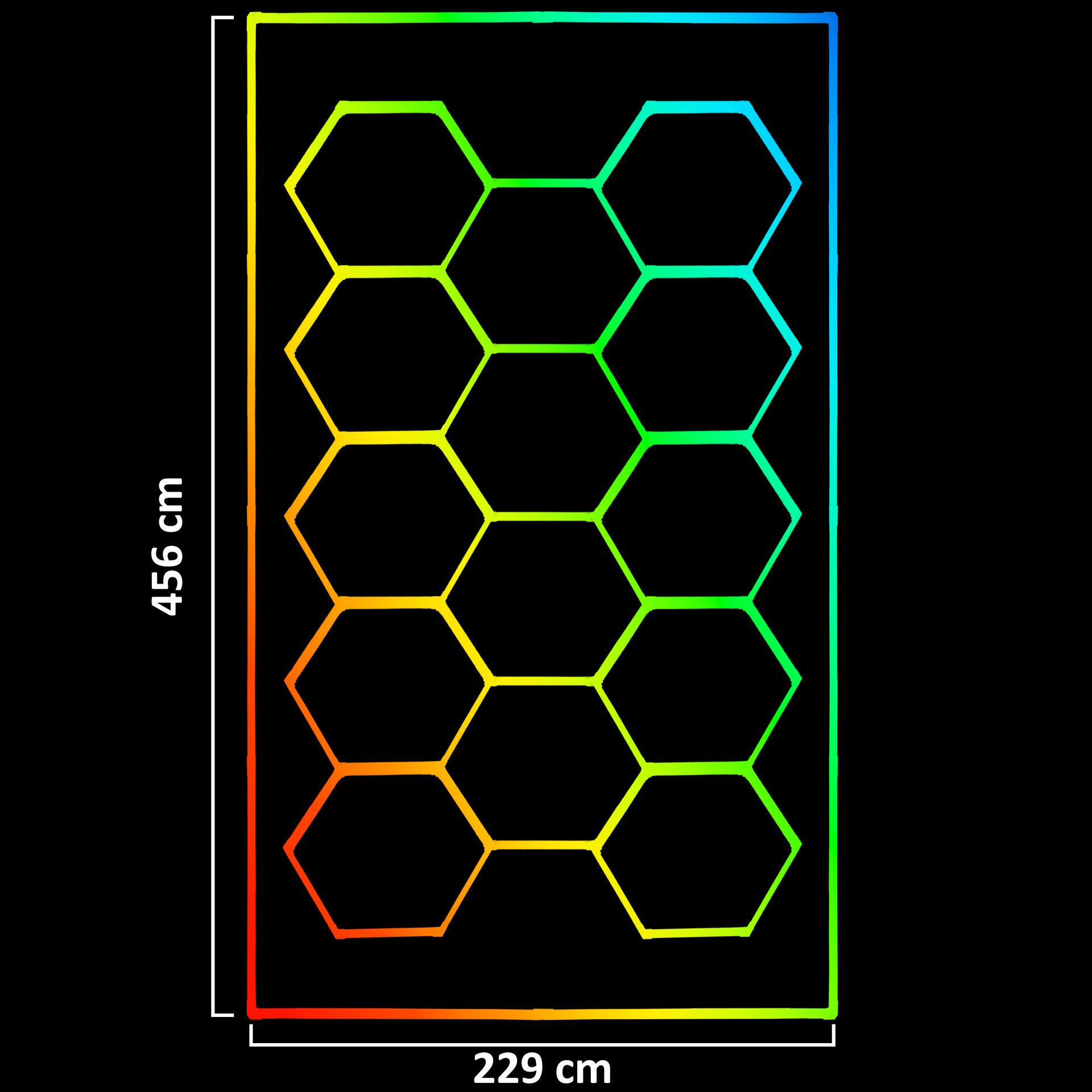 14 Ląstelių LED RGB Hexagon Lempa – Korys Apšvietimas Garažui, Dirbtuvėms ir Showroomui