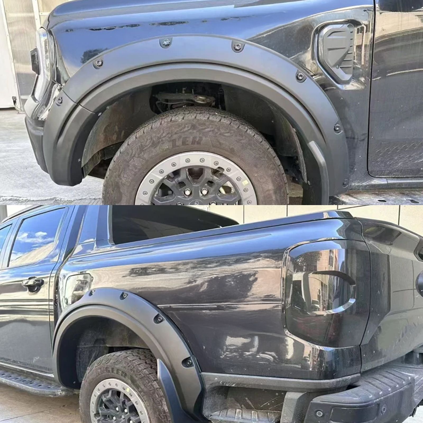 Tuning arkų apdailų komplektas skirtas Ford Ranger T9 modeliui nuo 23m. Be PDC skylių. Praplatinimas priekinės 9 cm, galinės 9 cm. Matinės nedažytos. Dviguba apdaila.